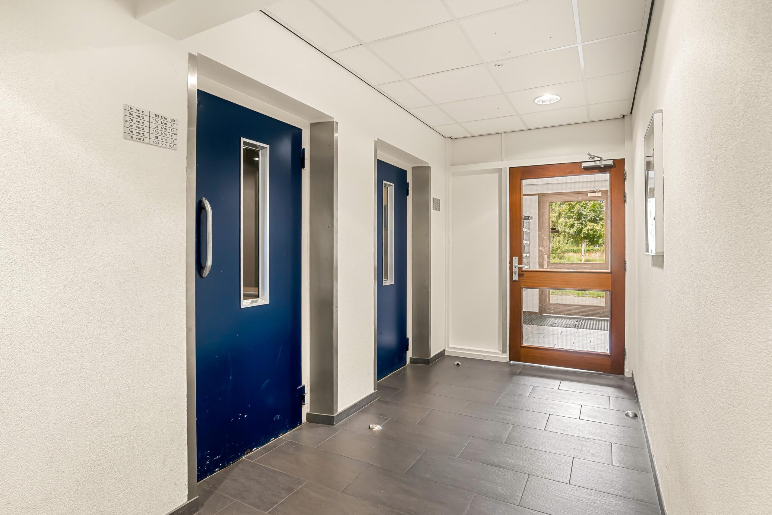 Begane grond: entree met bellentableau en lift naar de 7e verdieping.