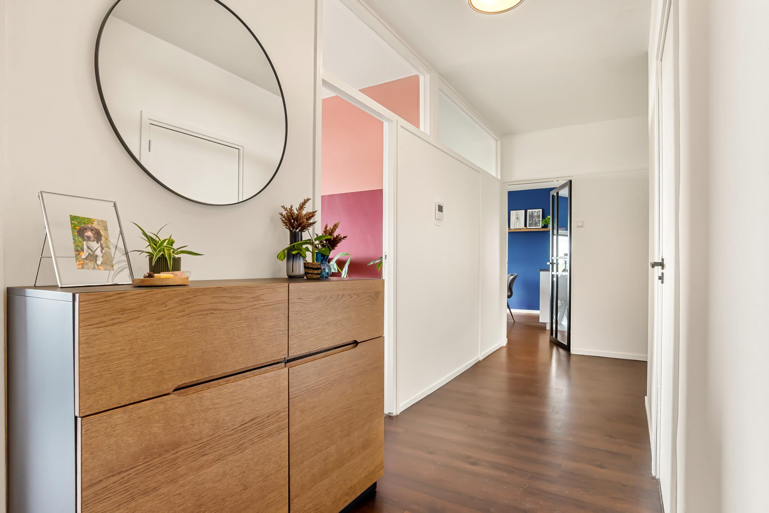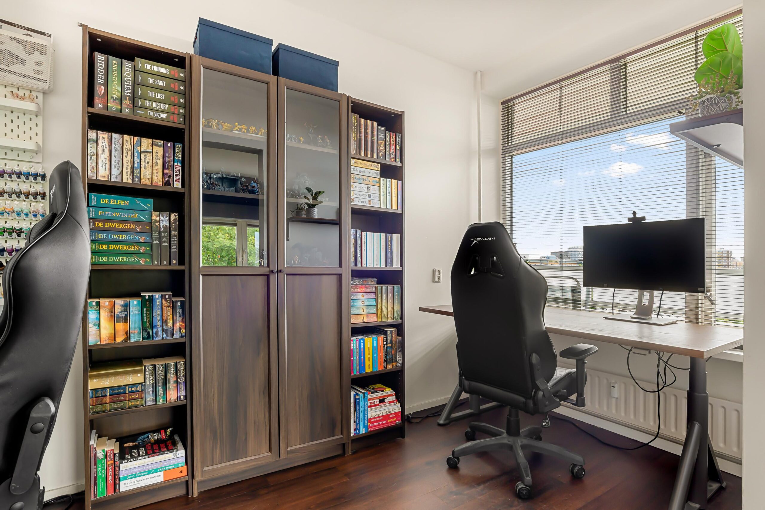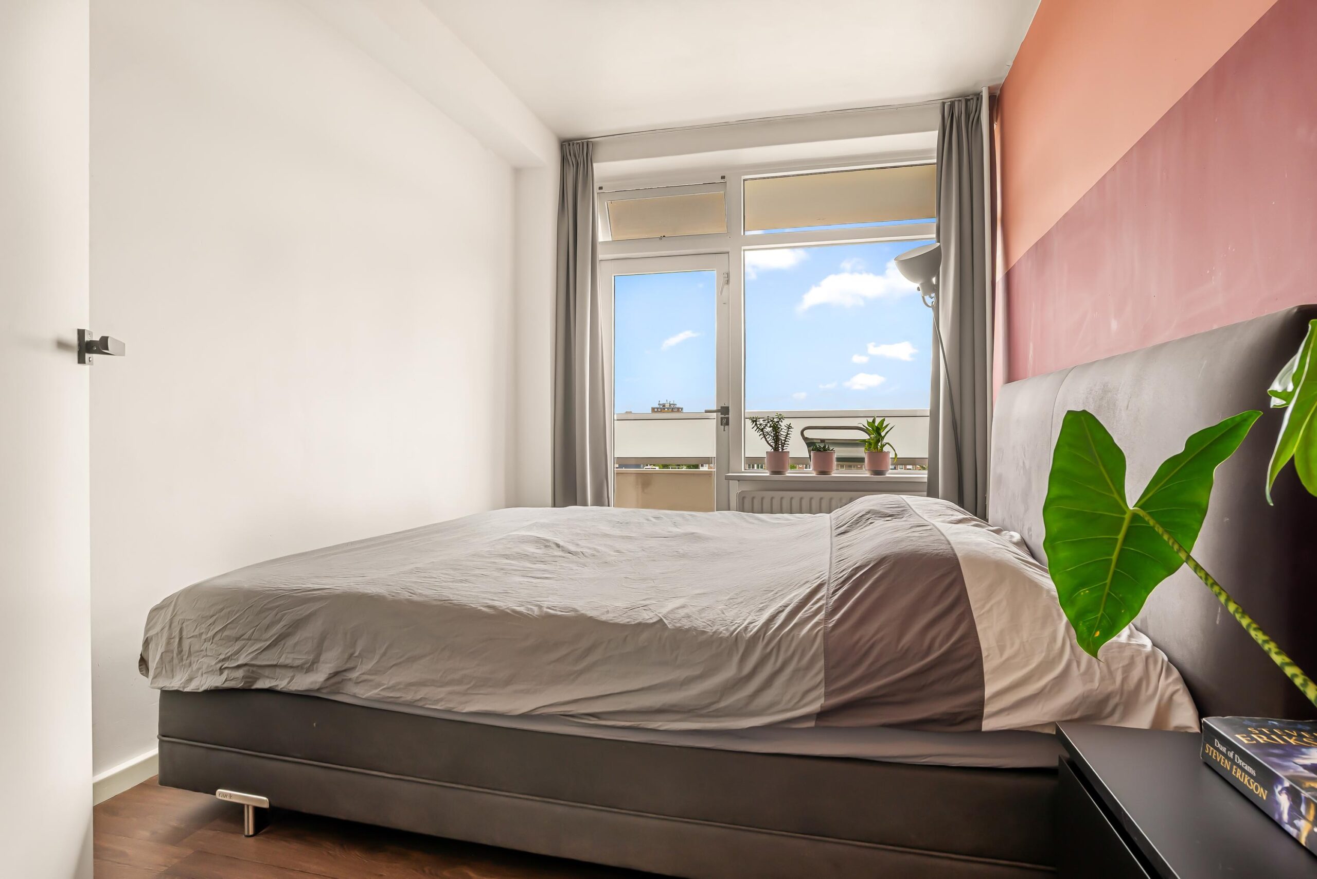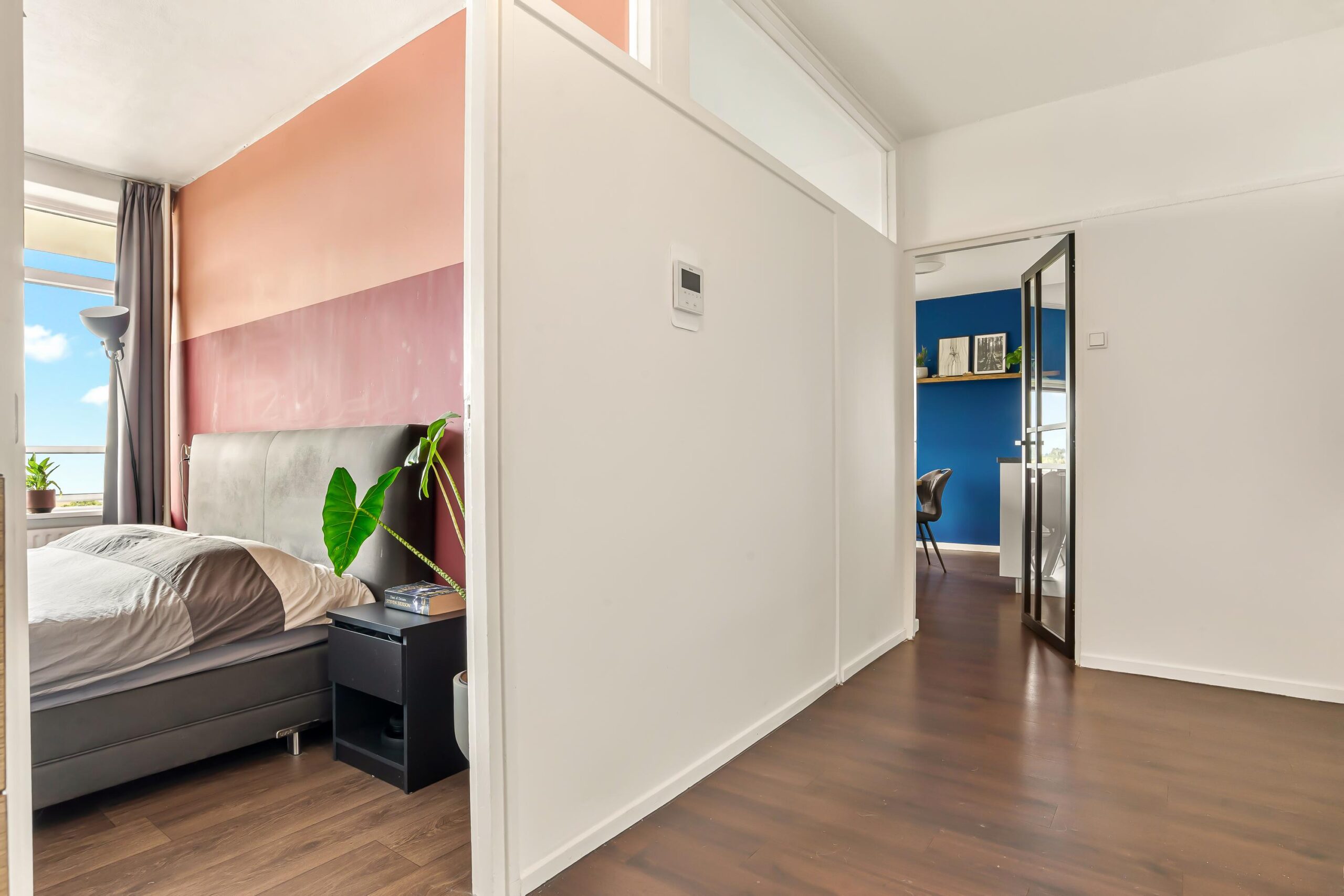 Het appartement beschikt over twee fijne slaapkamers, beide met toegang naar het balkon. Daarnaast is er nog een derde kamer die nu dienstdoet als werkkamer, maar die zich ook uitstekend leent als eetkamer, hobbyruimte of logeerkamer.