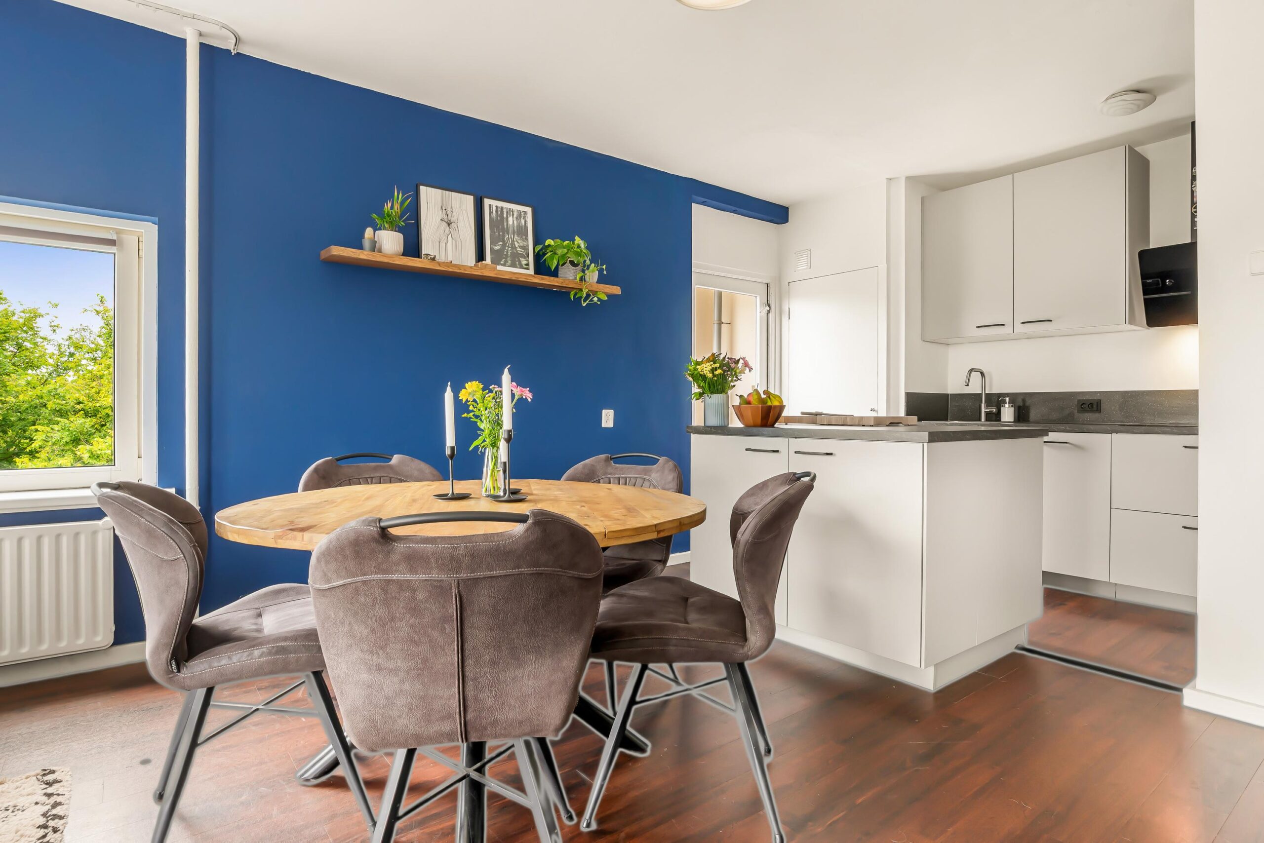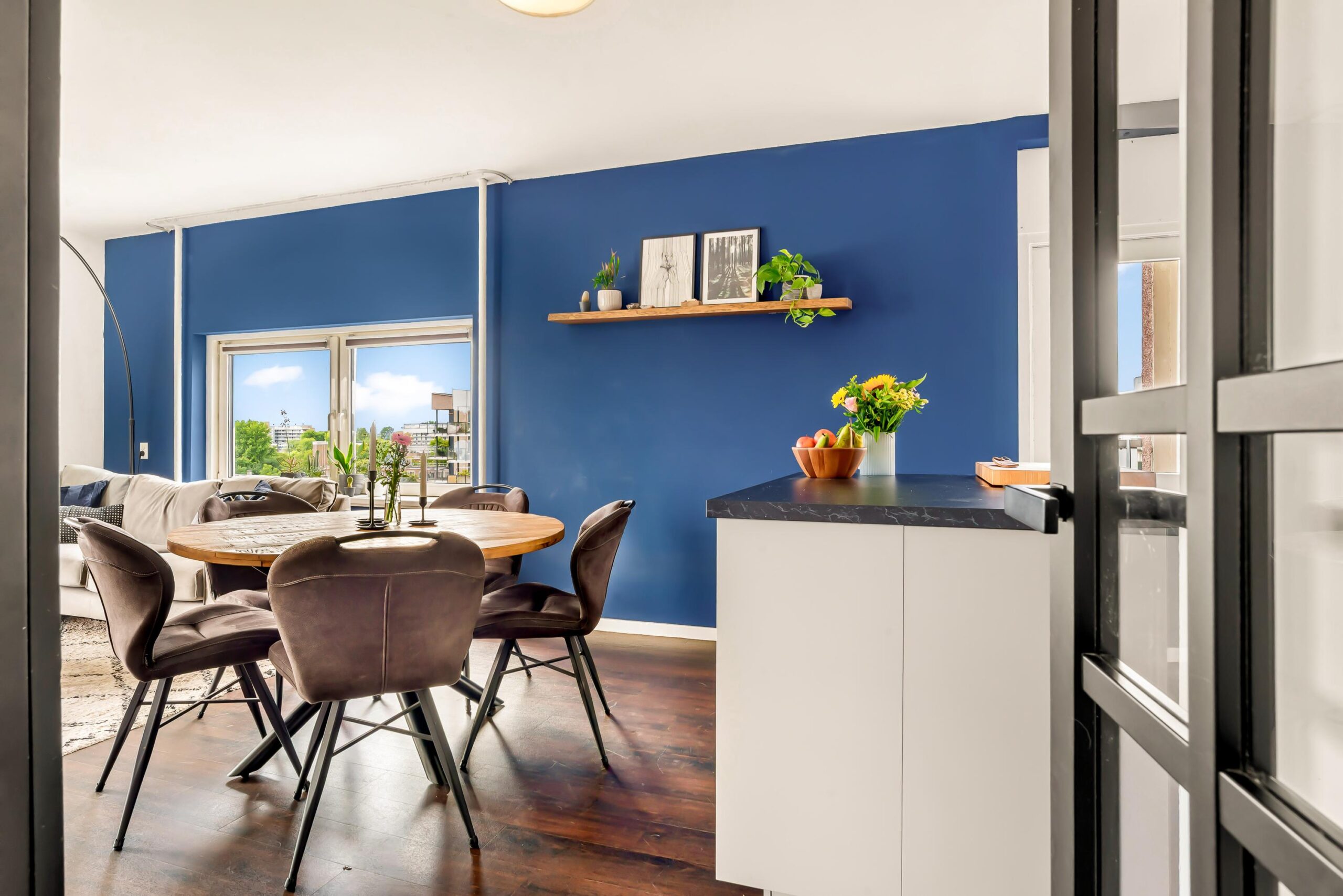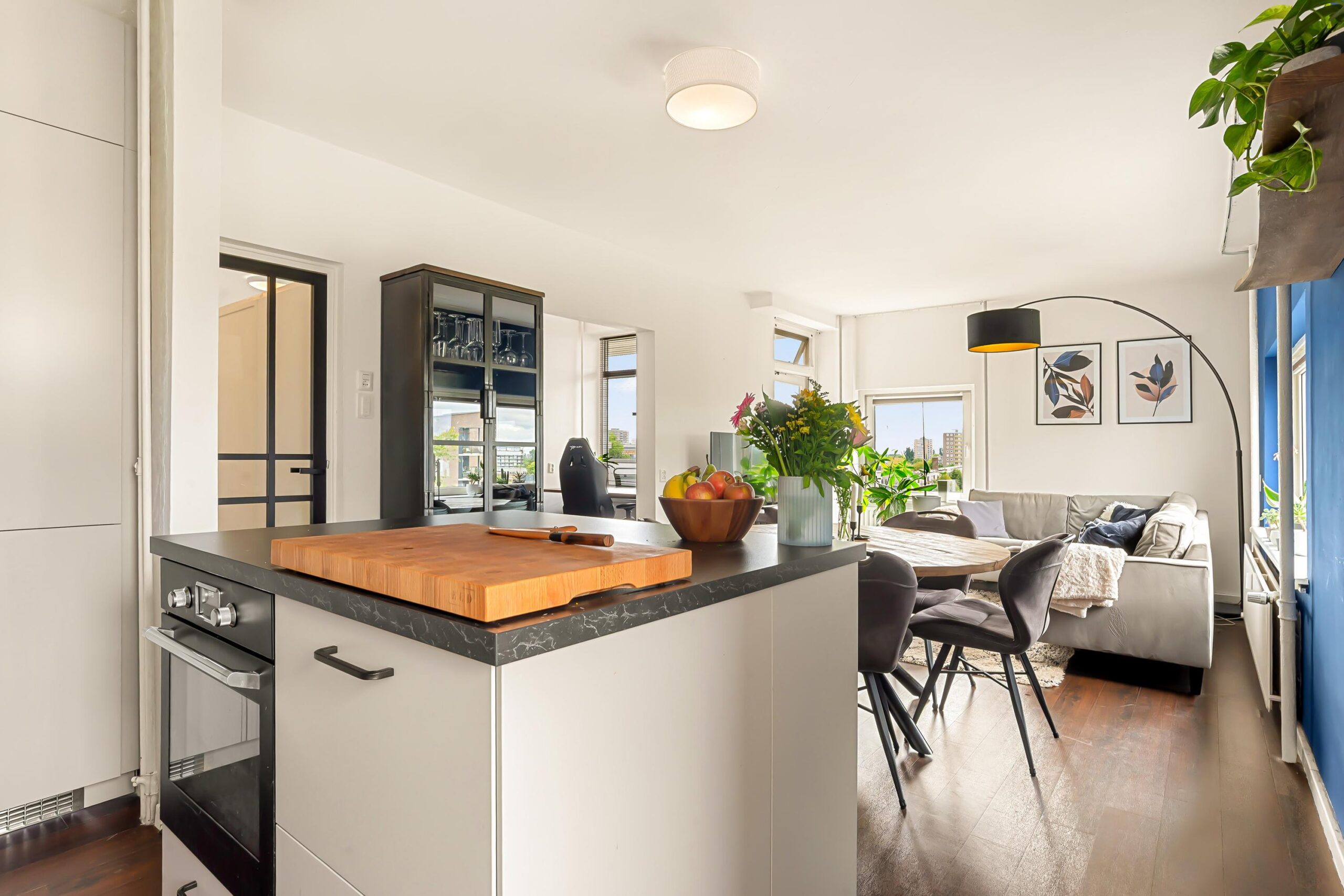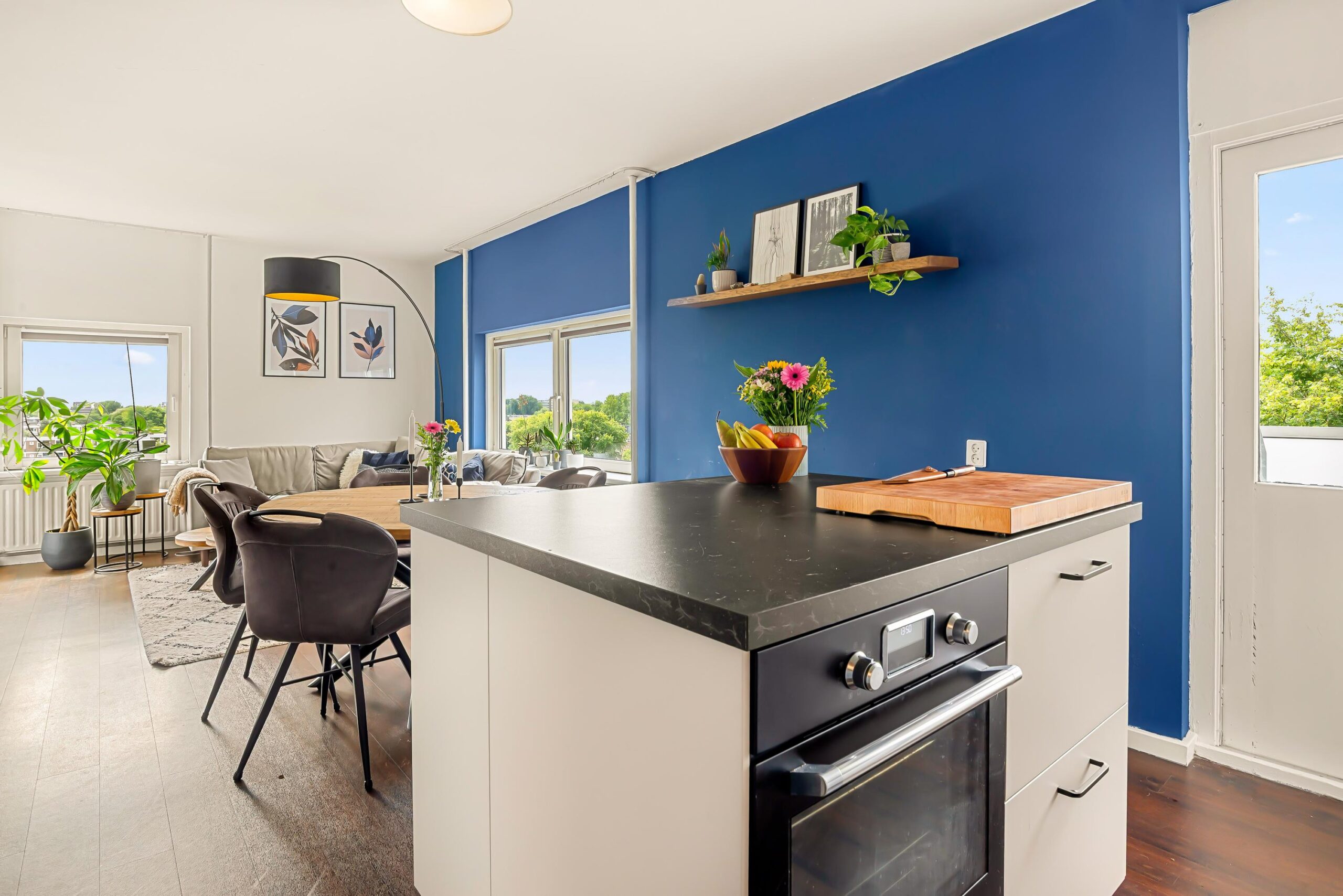 De woonkamer geeft directe toegang tot het zuidgerichte balkon – de perfecte plek om te ontspannen, een boek te lezen of te genieten van een drankje in de zon.