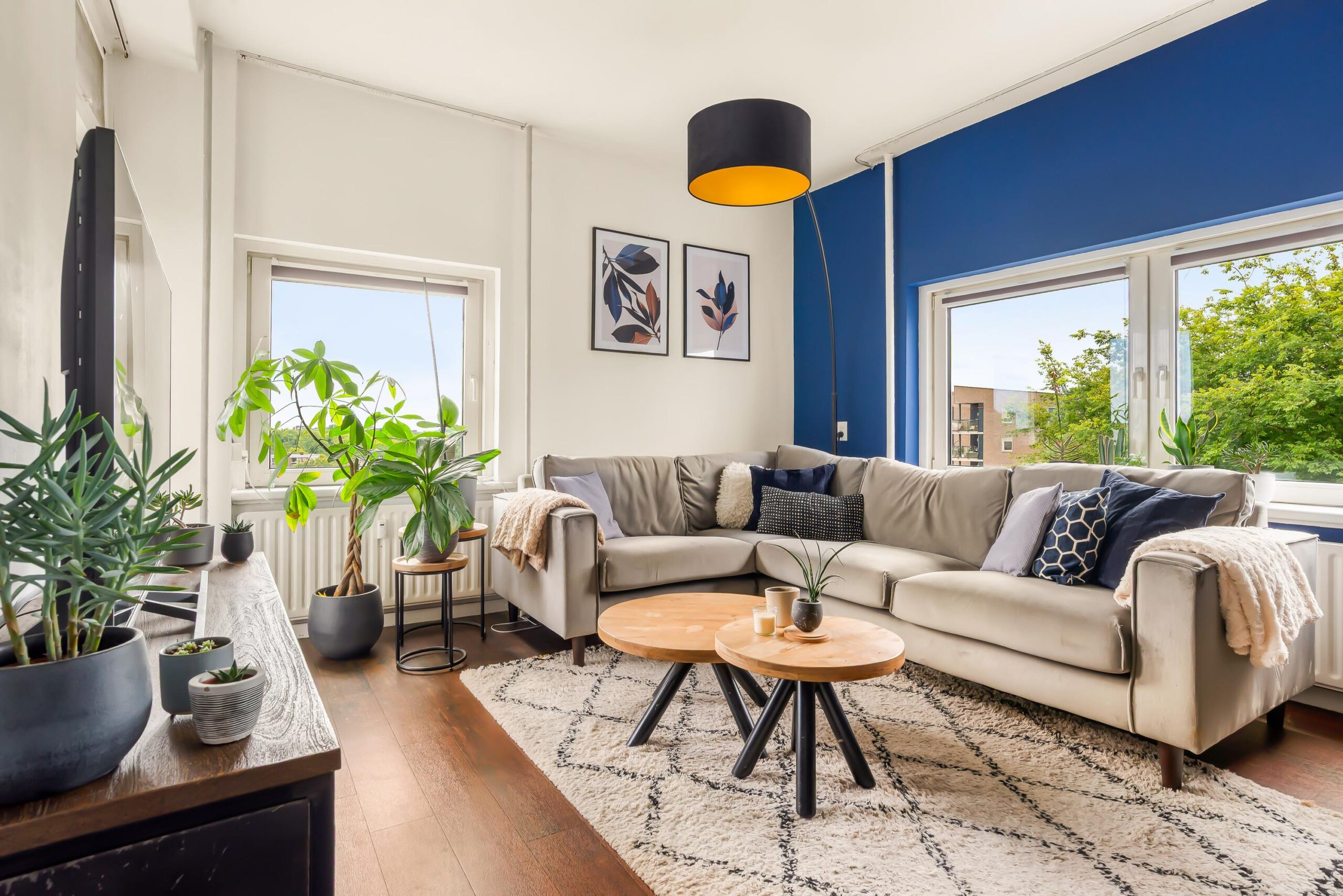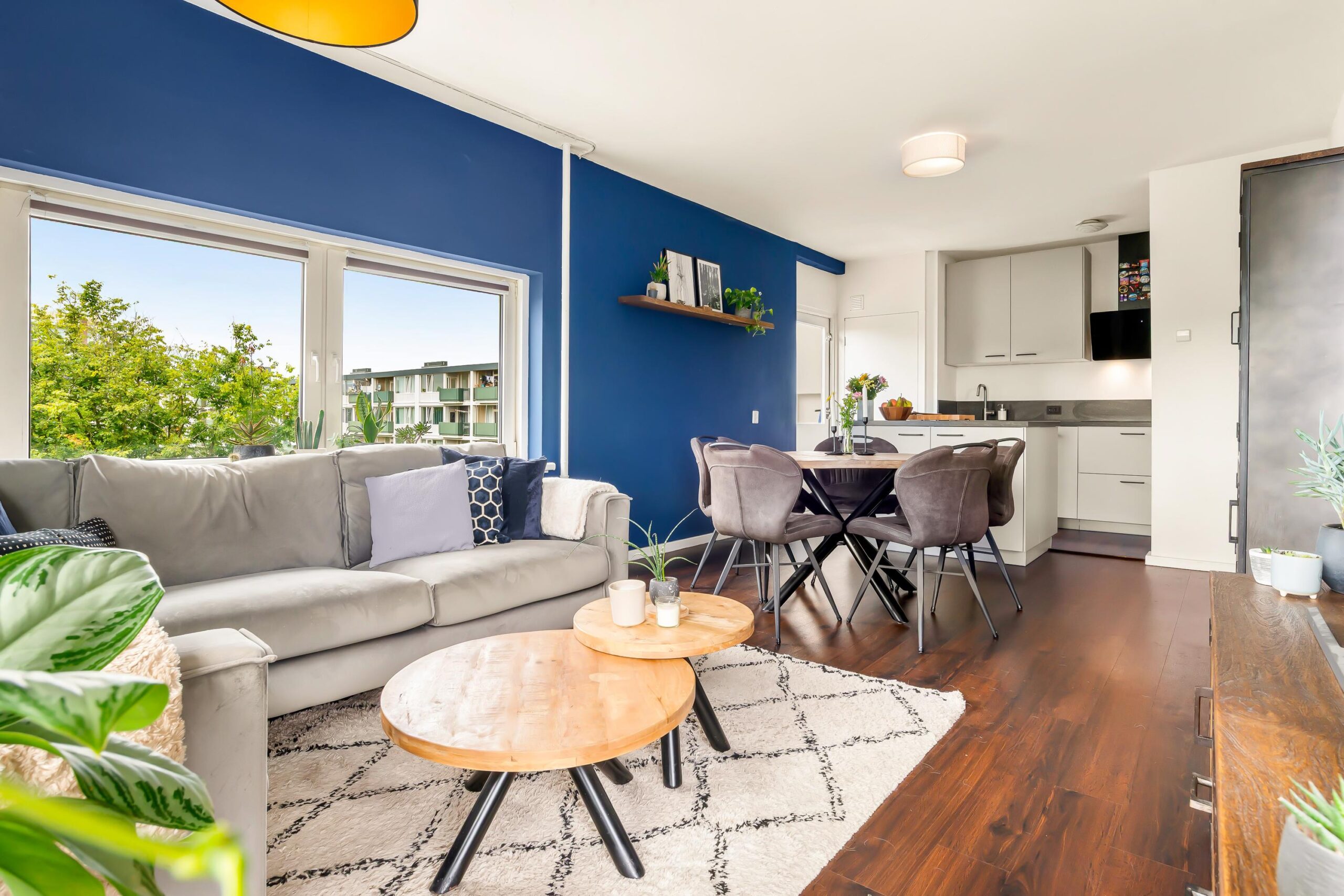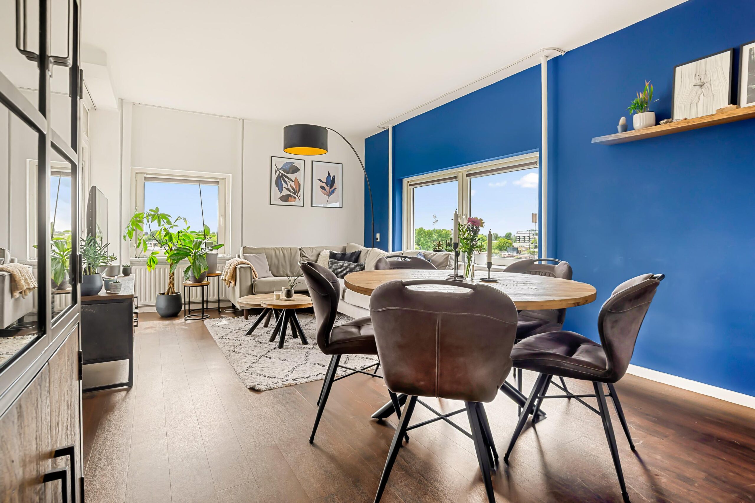 Zevende verdieping: Via de hal stap je binnen in het appartement waar meteen de prettige lichtinval opvalt. De woonkamer is ruim en gezellig en door de ligging op de hoek is er een extra raam wat het zo licht maakt.